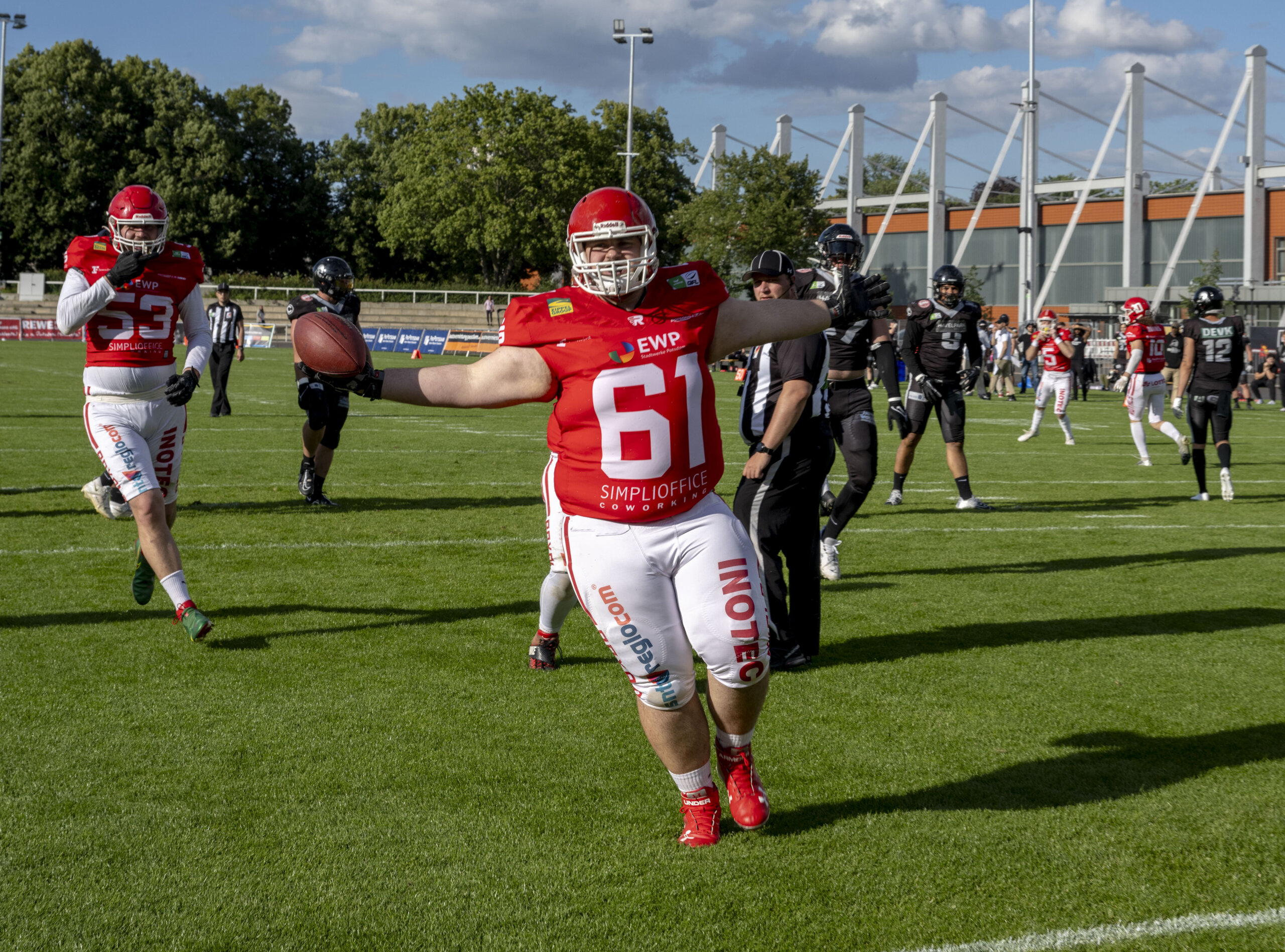Bei sonnigem Wetter und einer guten Stimmung vor 3.121 Zuschauern waren die herausragenden Akteure bei den Potsdamern der Quarterback Jaylon Henderson, der Receiver Brendan Beaulieu, Thomas Jenkins und Finn Krause. Für diese Saison war das zuschauermäßig eine Rekordkulisse.