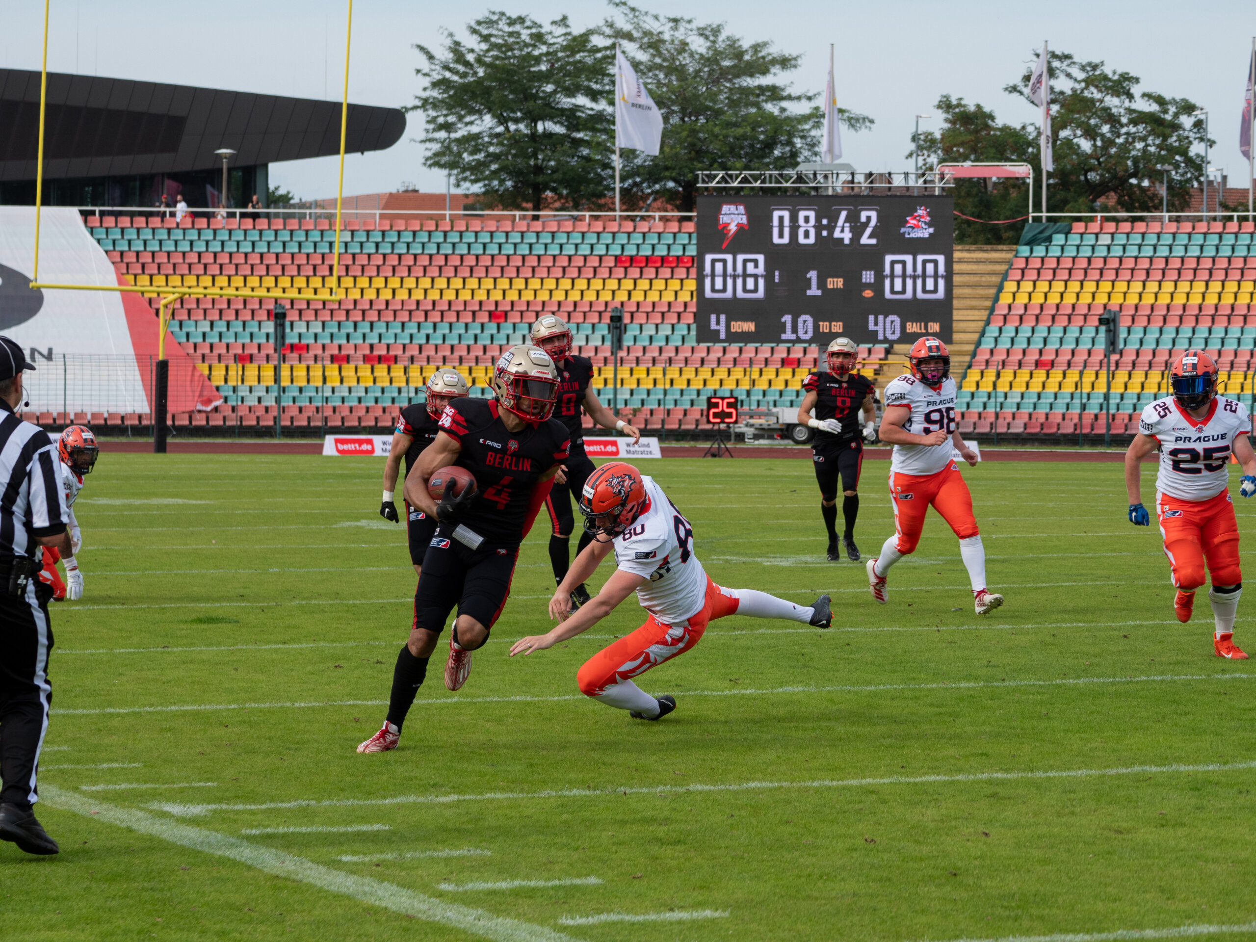 Im vorletzten Heimspiel der Vorschlussrunde in der European League of Football (ELF) gelang nach der kurzen Sommerpause den Berlin Thunder gegen Liga-Neuling Prag Lions mit 40:7 (26:7) in der Eastern Conference auch im Rückspiel wieder ein Sieg.